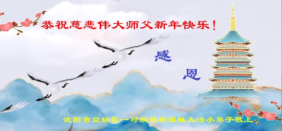 辽宁沈阳市皇姑区一对双胞胎姐妹大法小弟子恭祝慈悲伟大师父新年快乐!
