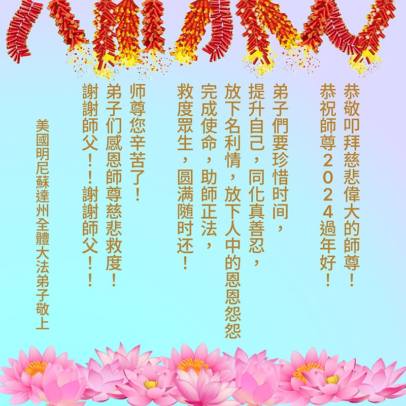 美国明尼苏达州全体大法弟子恭祝师尊2024过年好!