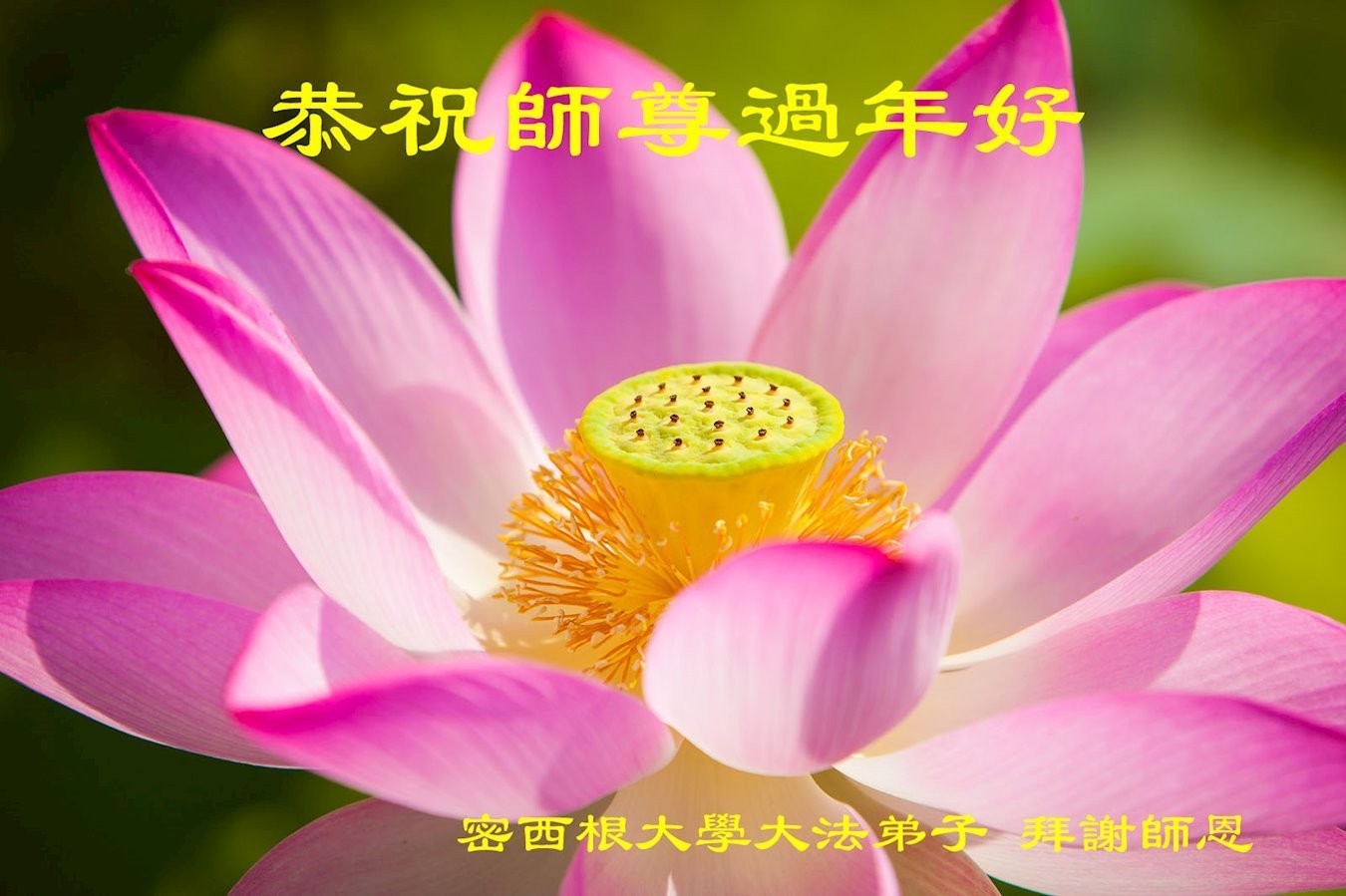 美国密西根州大法弟子恭祝慈悲伟大的师尊新年快乐!