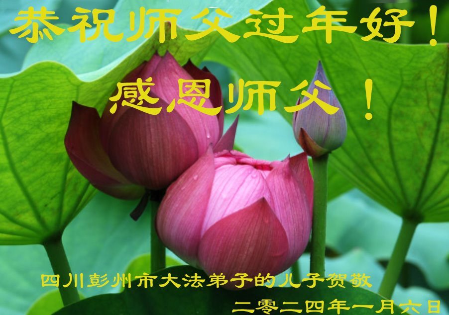 祝大法师父过年好! 我的姑妈是大法弟子。我也看过《转法轮》,合适的时机也传真相,前几天还劝退了两个人呢。因此我得到大法的佑护。 前几年,我染上了中共病毒,双肺全白了,医生告诉我丈夫说我希望不大了。我突然想起修炼大法的姑妈曾告诉我危难时诚念“法轮大法好,真善忍好”能逢凶化吉。我想,医院治不好,就靠大法救了。我要求出院回家,不停的念九字真言。病情凶猛,我发烧、咳嗽、上绿色痰、呼吸困难、全身疼痛、不能躺下睡觉。可我心里有底,我也不害怕,我就相信大法师父一定能救我,我每时每刻地念九字真言。念啊念啊,病情逐渐减轻。我没吃一粒药,最后奇迹般地好了。我们全家感谢大法师父的救命之恩! 我丈夫也曾在大法师父的保护下死里逃生。前几年,我丈夫开三轮车给工地拉钢管,钢管比车长出很多。有一次送货,又是上大坡,因车身后面沉,前面轻,快到坡顶时突然翻车,我丈夫连人带车翻到旁边十多米深的沟里。周围干活的人都跑过来救援,车在沟底下,车身严重变形,车门打不开,都认为人不死也得残废。大家用钢钎撬开车门后,我丈夫毫发无损的从车里出来了,人们瞪大眼睛张着嘴,都惊得说不出话。因为我丈夫明白真相,平时也念九字真言“法轮大法好,真善忍好”,身上还带着真相护身符。是大法师父在生死关头保护了他。 我儿子也相信大法好。儿子今年十二岁了,他从没去过医院,也不用打针吃药,偶尔感冒也不用吃药,我就叫他念九字真言。他自己也主动告诉我:“妈妈,我正在念呢。”九字真言就是灵丹妙药! 我们全家感谢大法师父的救命之恩!祝大法师父过年好! 几遇灾难幸得大法护佑,四川彭州大法弟子明真相的儿子恭祝师父过年好!