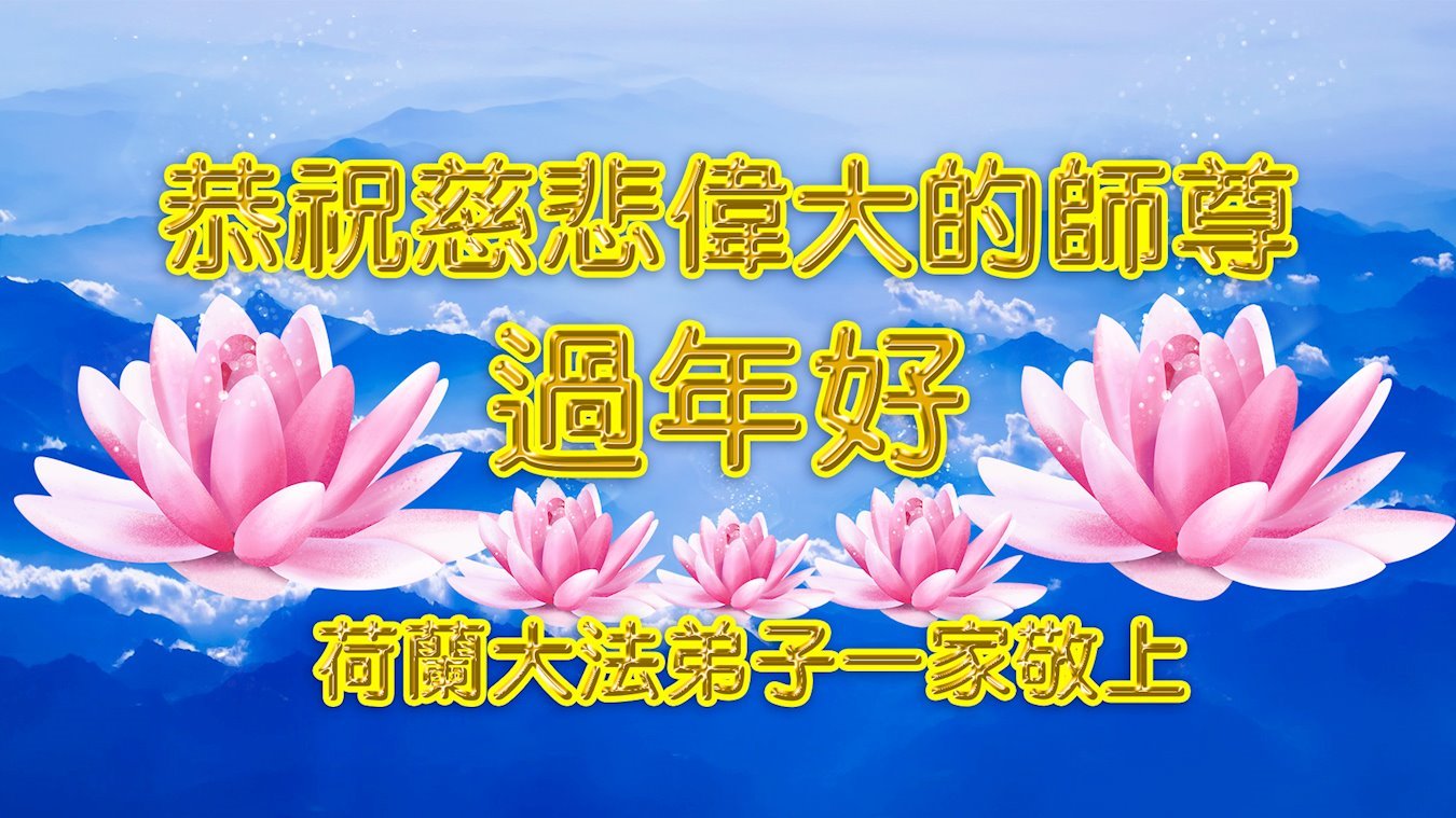 荷兰大法弟子一家恭祝慈悲伟大的师尊过年好!