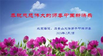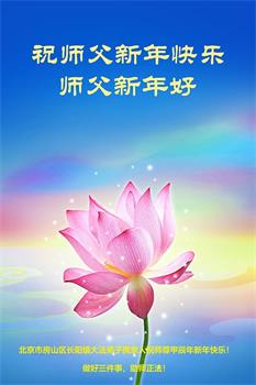 北京海淀、石景山区四位大法弟子给慈悲伟大的师尊拜年!恭祝慈悲伟大的师尊中国新年快乐!