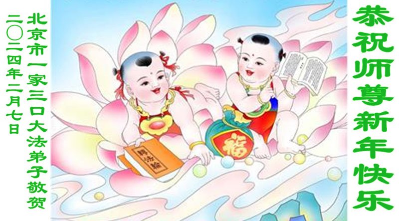 师父过年好! 师尊正法度苍生, 再造天宇洪恩重。 旧宇坏灭生命危, 得救唯把渡船登! 生命来自创世主, 敬重大法福禄生。 世人莫被红魔骗, 远离中共随神行。 北京市石景山区大法弟子敬上 二零二四年一月二十三日 北京大法弟子恭祝师父新年快乐!