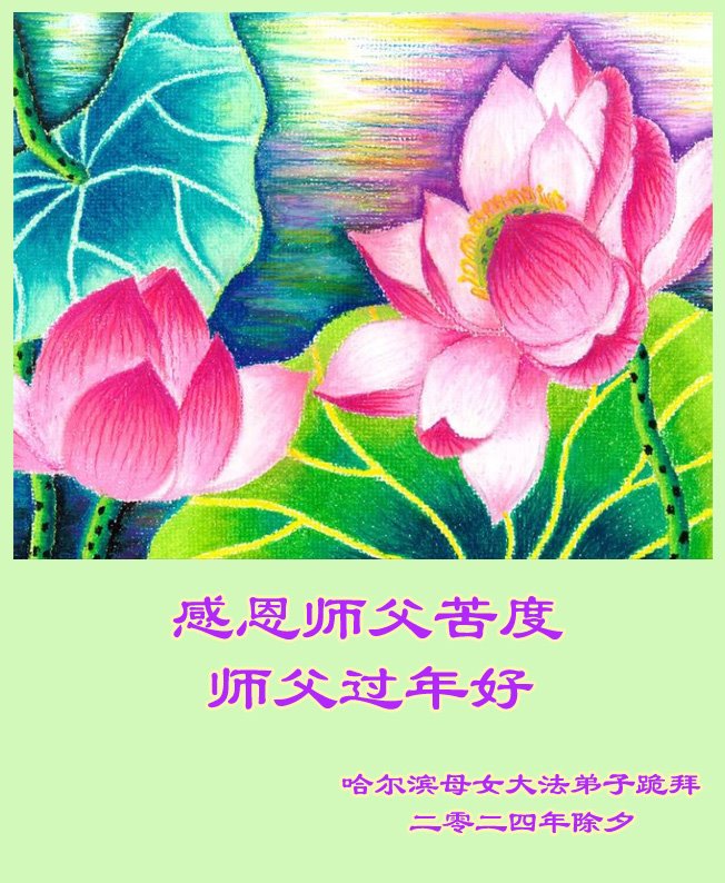 哈尔滨母女大法弟子问候师父!师父过年好!感恩师父苦度! 黑龙江省哈尔滨市一学法小组大法弟子恭祝师尊新年好!