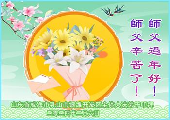 【明慧网二零二四年二月十二日】 山东省日照市全体大法弟子敬祝伟大慈悲的师尊新年快乐!