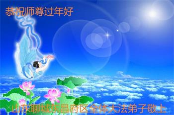 弟子恭祝慈悲伟大的师尊过年好!感恩师尊、感谢大法。在新的一年里,弟子努力学好法,炼好功,发好正念,兑现下世前的约定。 山东省淄博市周村区大法弟子恭祝师尊新年好!法轮大法好、真善忍好。