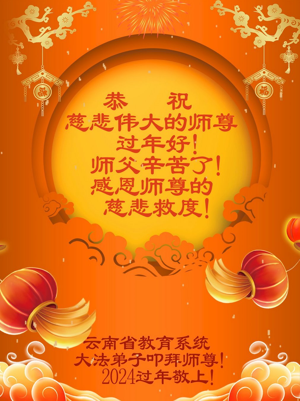 长春教育系统大法弟子敬上 二零二四年二月四日 云南省教育系统大法弟子恭祝慈悲伟大的师尊过年好!