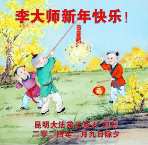 云南昆明大法弟子家人恭祝李大师新年快乐!