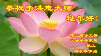 宁夏大法弟子家人恭祝李大师过年好! 感恩李大师大法洪传, 感恩真善忍沐浴穹苍, 众生得福泽幸福安康, 恭祝李大师过年好。 河北省廊坊市文安县一大法弟子家属恭祝李大师过年好!
