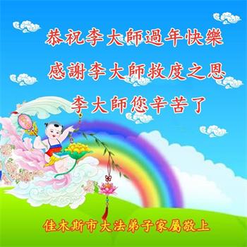 谢谢李大师慈悲救度! 法轮大法好!真善忍好!师父好! 黑龙江省佳木斯市大法弟子家属恭祝慈悲伟大的李大师过年好!