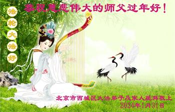 感恩师尊慈悲救度!我们一定要坚定正念正行、时刻保持纯净祥和的心态、做好大法弟子该做的事,圆满随师还! 2024年2月5日 北京市西城区一大法弟子及家人恭祝慈悲伟大的师父新年快乐!