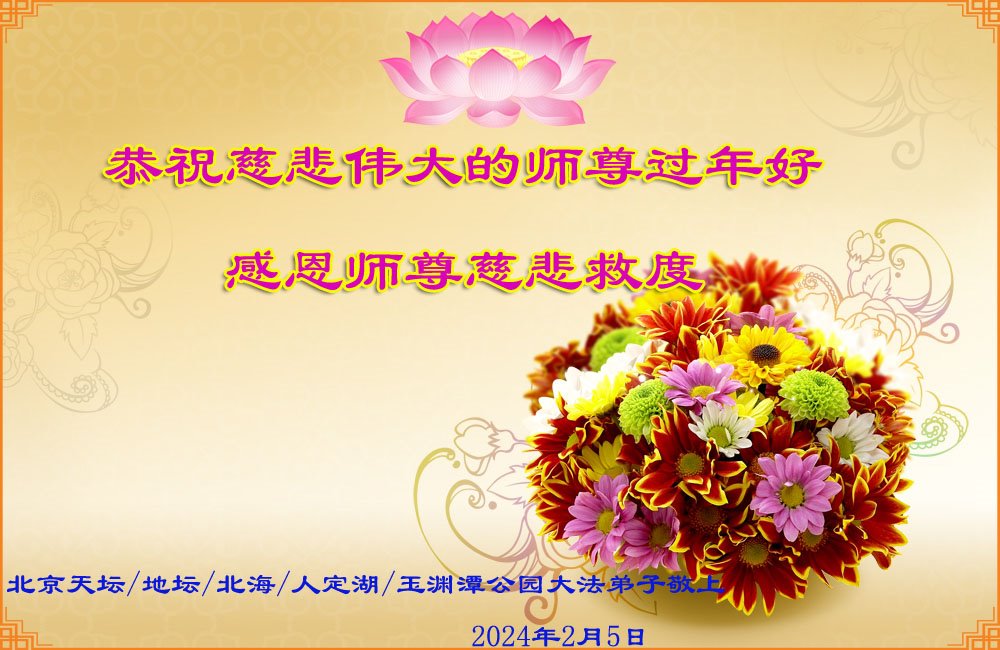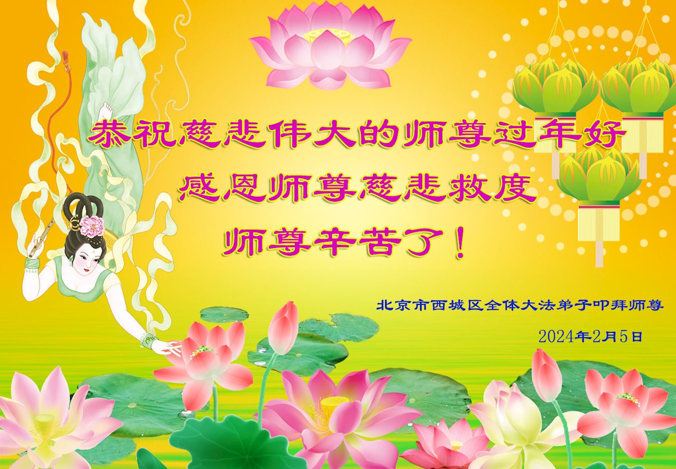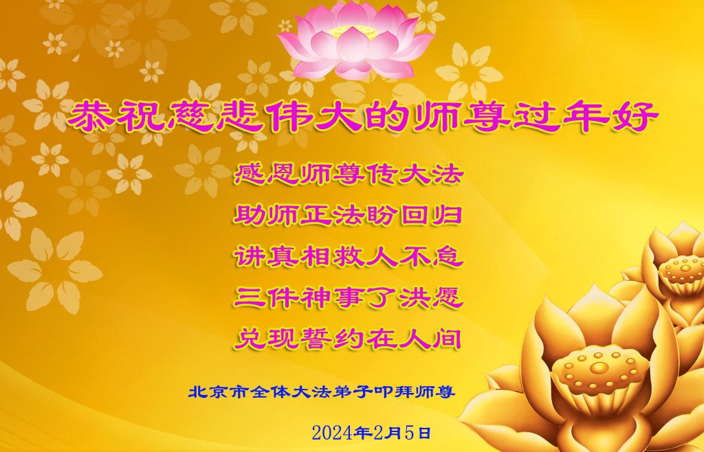 感恩师尊慈悲救度!师尊辛苦了!北京市西城区全体大法弟子叩拜师尊 2024年2月5日 北京市回龙观地区大法弟子恭祝师尊新年快乐!