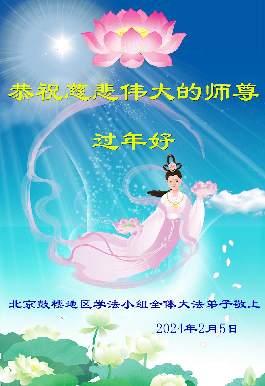 弟子们坚修大法心不动,净心学法不迷惑,做好三件神圣事,去掉人心人情人念,想着师父实修自己,随师返家园。 北京市鼓楼地区学法小组全体大法弟子敬上 2024年2月5日 北京市西城区全体大法弟子恭祝师尊过年好!
