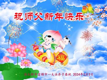 尊敬的师父您好!新年即将到来之际,弟子在大陆向大洋彼岸的师父问候新年快乐! 从今以后更要坚定信心和决心多学法炼好功做好师父安排的三件事,不辜负师尊的慈悲救度。 2024年2月3日 黑龙江省佳木斯市近江两名老年大法弟子恭祝慈悲伟大的师尊过年好!