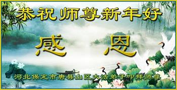 师尊辛苦了! 在新的一年里,弟子要配合整体,多救人,让师父少一点操心。 河北省保定市阜平县一学法小组大法弟子恭祝师父新年好!