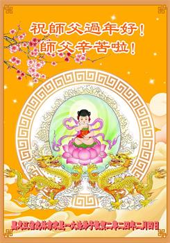 师父新年好!恭祝师父新年快乐!师父您辛苦了!感恩师父的慈悲救度!您为弟子铺就了上天之路!您为众生付出的艰辛,无法用语言尽诉!您为弟子承受太多、太多!精進,别无选择,三件事理所当然做好,带着更多的众生回家是我们共同的愿! 辽宁省清原县铁路系统大法弟子敬上 山东潍坊化纤厂全体大法弟子恭祝慈悲伟大的师尊过年好!