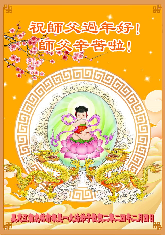【明慧网二零二四年二月十二日】 华北油田大法弟子全家恭祝慈悲伟大的师父新年好!