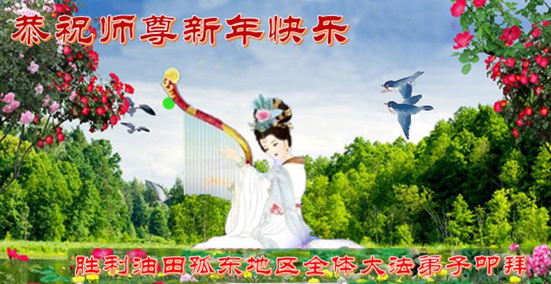 胜利油田孤东地区全体大法弟子恭祝师尊新年快乐!