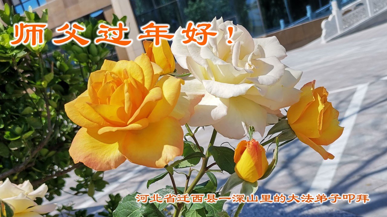 恭祝慈悲伟大的师尊新年快乐!新的一年我们一定努力实修,做好我们该做的三件事。 河北省唐山迁安市一大法弟子恭祝伟大的师父过年好!