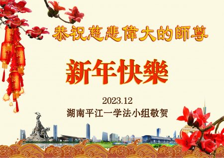我们这个学法小组已经有十七八年了,从来没有停过,一直坚持到现在。这是师父给我们的加持,所以我们这个学法小组能很平安地一直走到今天。大家的文化水平比较低,不会写什么,但在新的一年,新的时候,大家都有一个心愿,想向师父问好,祝师父过年快乐!我们一定会努力精進,一直会走到底,跟师父回家,我们一定不辜负师父的期盼! 湖南邵阳外地打工老百姓恭祝师父新年快乐!