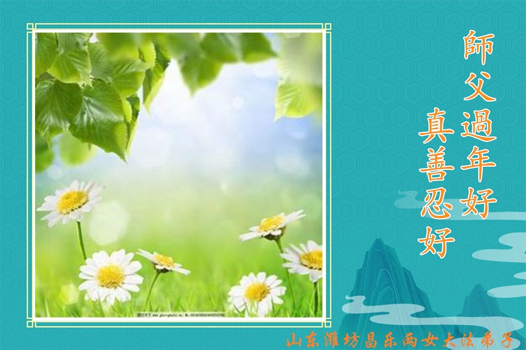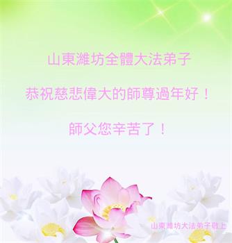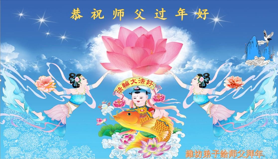 弟子叩谢慈悲伟大的师父的救度,师父新年好! 法轮大法好,真善忍好! 山东省潍坊市奎文区老年大法弟子恭祝慈悲伟大的师父过年好!
