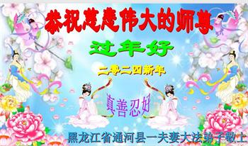 黑龙江省哈尔滨市通河县一夫妻大法弟子恭祝慈悲伟大的师尊过年好!
