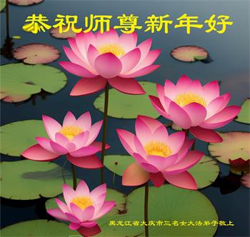 黑龙江省大庆市三名女大法弟子恭祝师尊新年好!