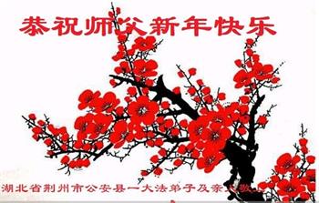 湖北省武汉市一大法弟子及全家敬上 湖北武汉武昌区一学法讲真相小组恭祝师父过年好!