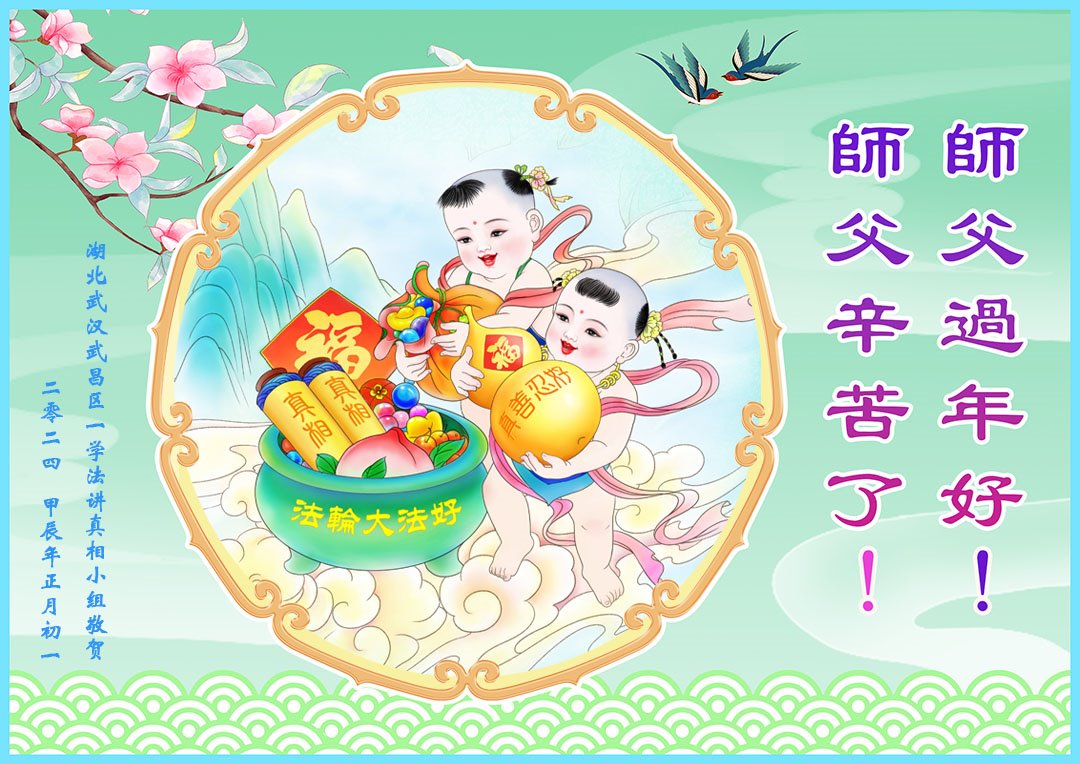 师父过年好! 湖北省武汉市一女大法弟子敬上 二零二四年二月九日 除夕 湖北省武汉市一学法小姐全体大法弟子及家人恭祝师尊过年好!