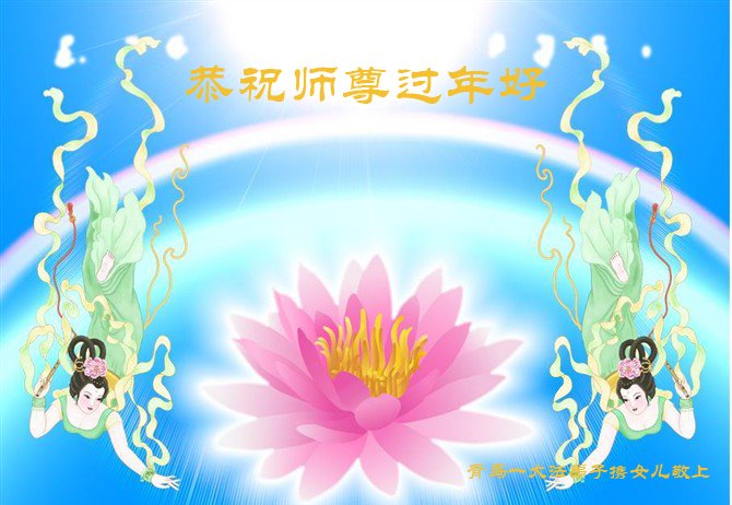感恩师尊慈悲救度!师尊辛苦了! 弟子们要多学法,修好自己。 山东省青岛市大法弟子携女儿恭祝师尊过年好!