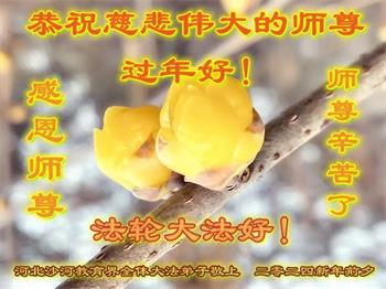 谢谢师父慈悲救度! 河北省教育系统全体大法弟子敬上 吉林省长春东北师大附中大法弟子恭祝慈悲伟大的师尊过年好!