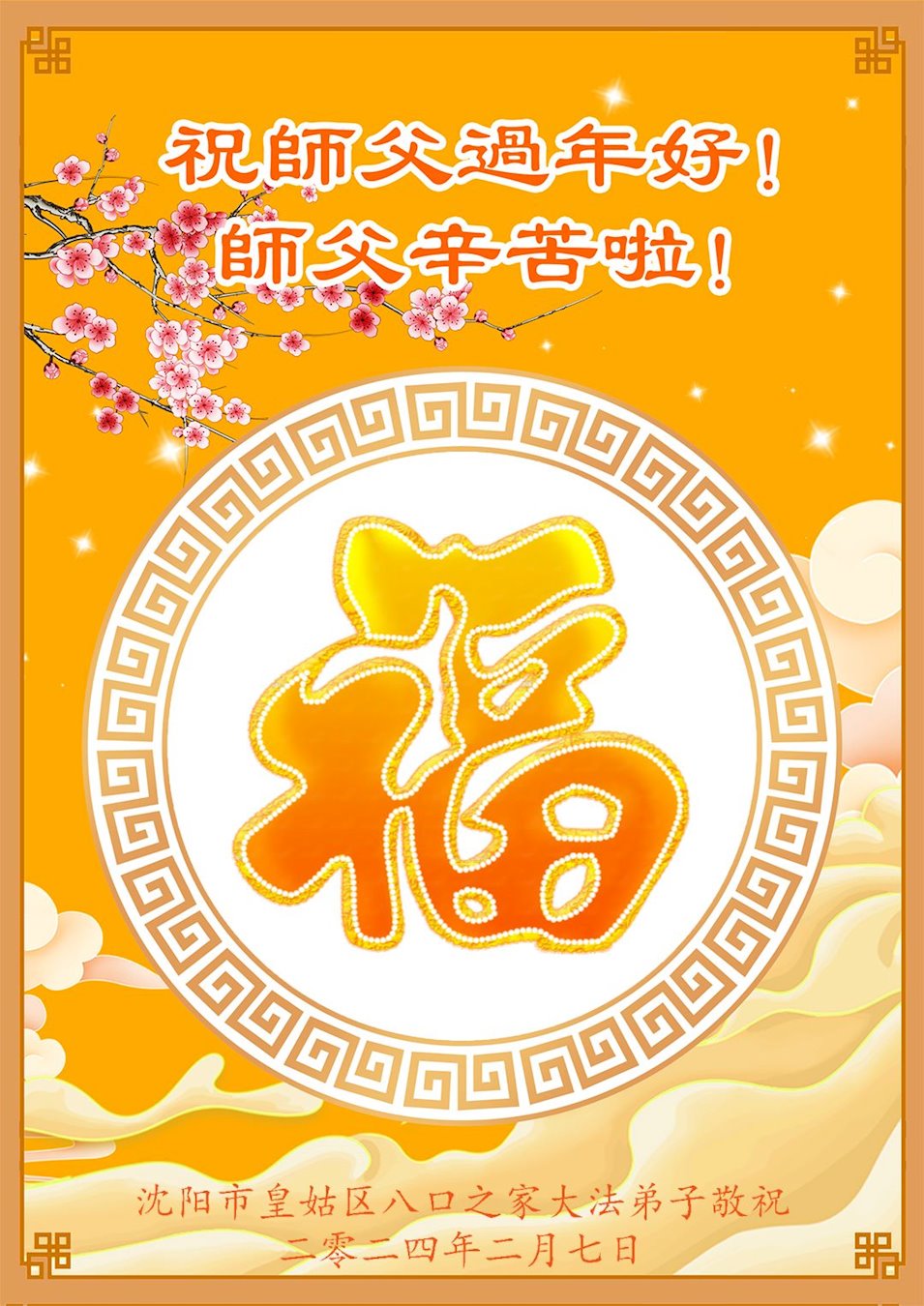 【明慧网二零二四年二月十二日】 辽宁沈阳市皇姑区八口之家大法弟子恭祝师尊过年好!