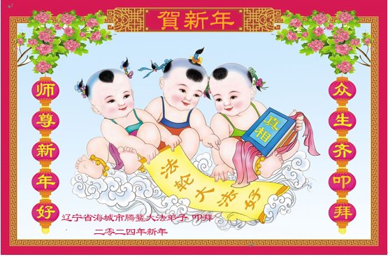 感恩师父慈悲救度,弟子们一定多救人,完成誓约! 辽宁一救人小组祝师父新年快乐! 二零二四年二月九日 除夕 辽宁省鞍山市一家二人大法弟子敬贺师父过年好!