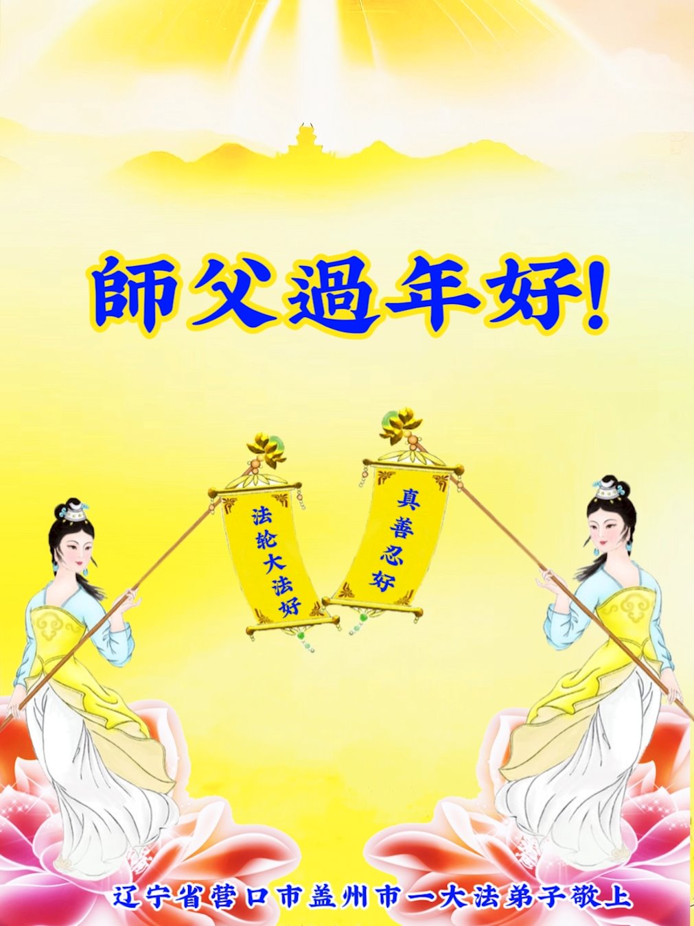 辽宁省营口市盖州市一大法弟子恭祝师父过年好! 感恩师父慈悲救度! 辽宁丹东市一大法弟子恭祝慈悲伟大的师尊过年好!