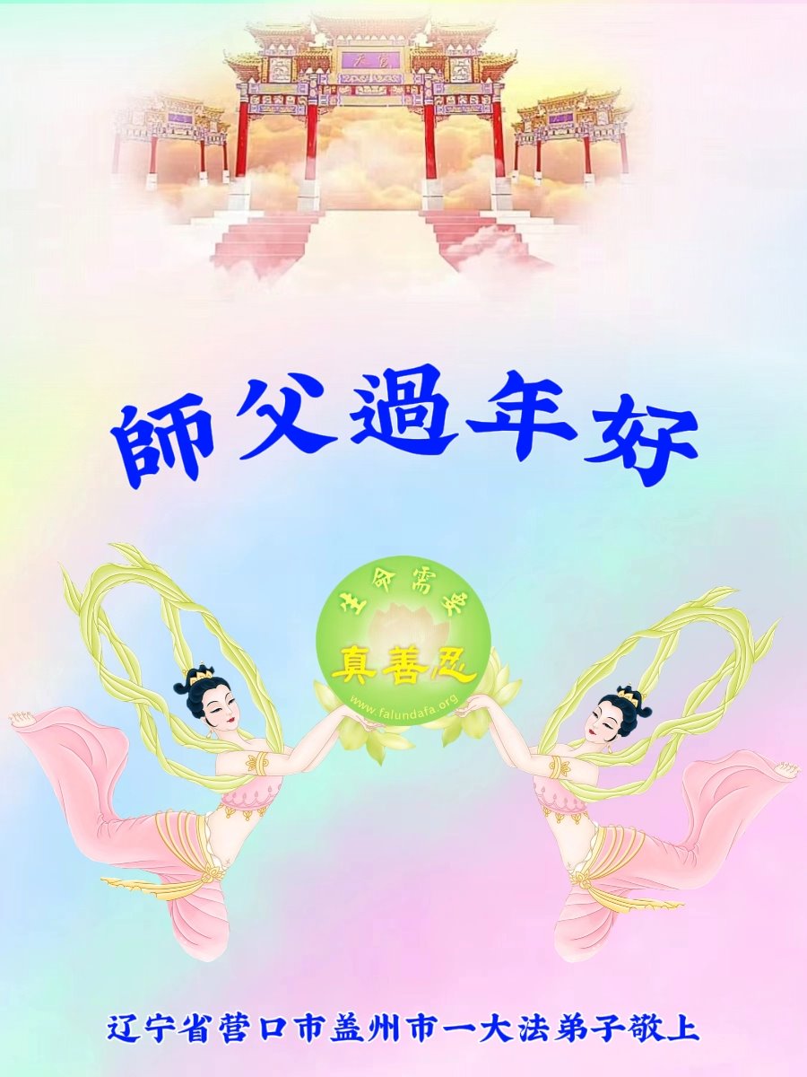 恭祝慈悲伟大的师尊过年好!师尊您辛苦了! 辽宁阜新一大法弟子敬上 二零二四年二月八日 辽宁省营口市盖州市一大法弟子恭祝师父过年好!