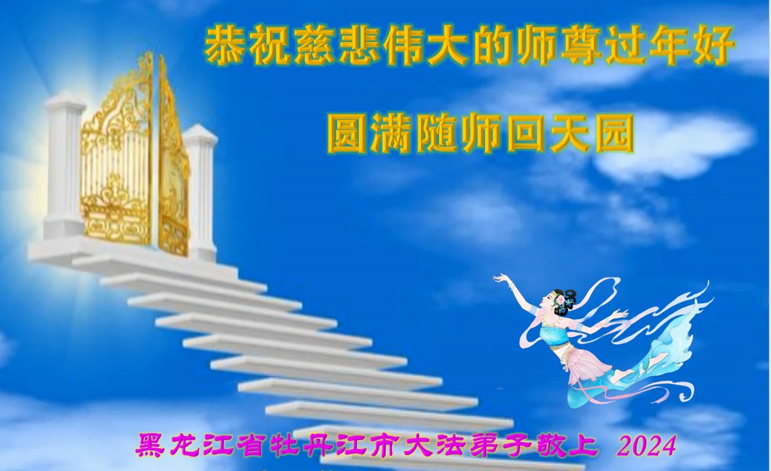 龙年到,心欢笑。大法弟子家属感恩师尊慈悲救度,衷心祝愿师尊过年好! 黑龙江省牡丹江市大法弟子恭祝师尊过年好