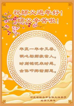 在新年到来之时恭祝师尊过年好!弟子在新的一年里更加努力学好法修好自己多救人请师尊放心。 二零二四年二月八日 河北省衡水市景县龙华大法弟子们恭祝师父过年好!