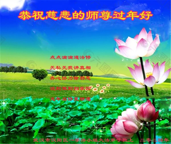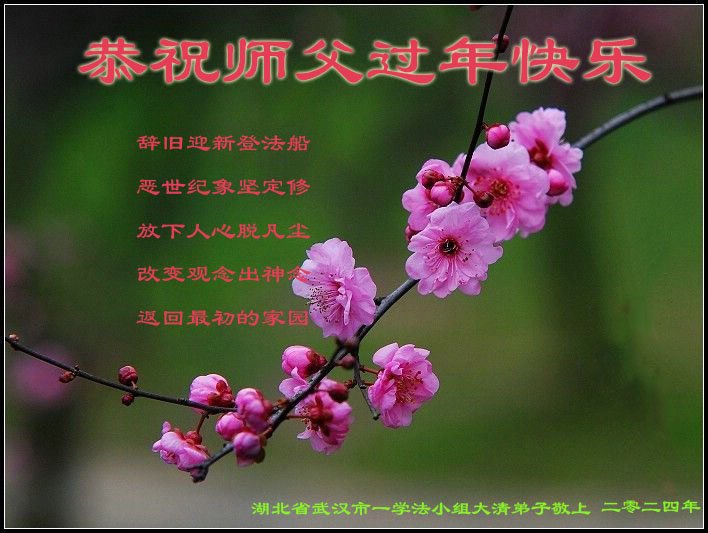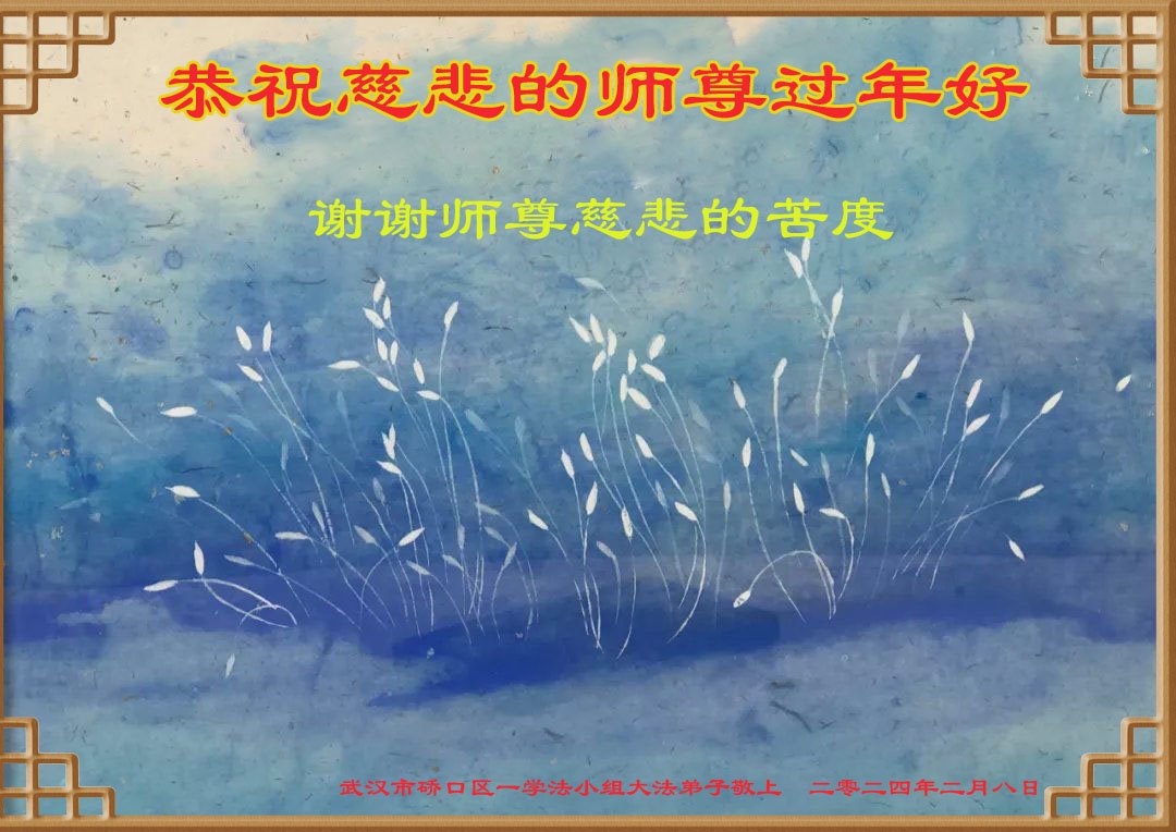 【明慧网二零二四年二月十二日】 湖北省武汉一学法小组大法弟子恭祝慈悲的师尊过年好!