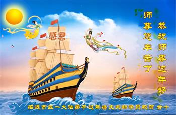 山东威海高区天池一学法小组大法弟子恭祝师尊新年快乐!