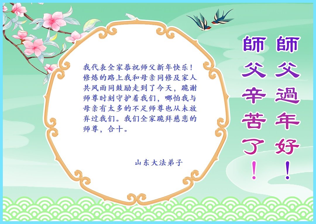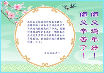 【明慧网二零二四年二月十二日】 山东省济宁市任城区一大法弟子携全家恭祝师尊新年快乐!师尊辛苦了!