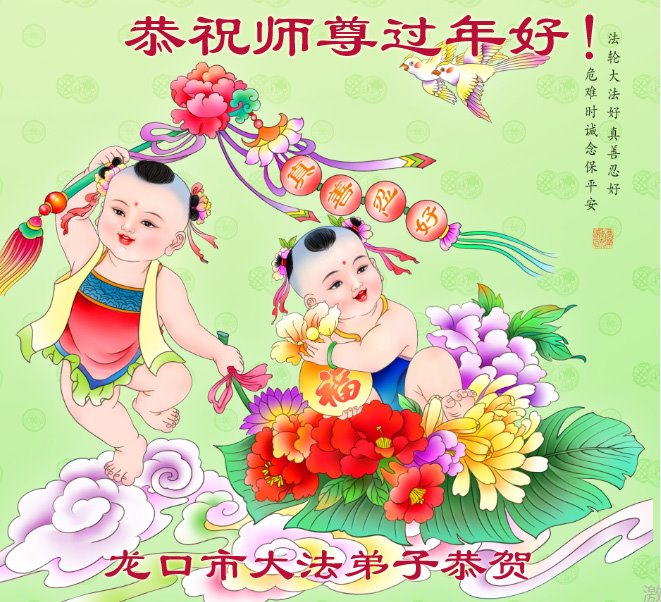 师父您辛苦了!感恩师父慈悲救度,叩拜师父! 山东省烟台市龙口市两位老年大法弟子恭祝师父过年好!