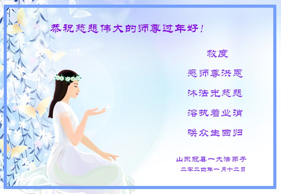 山东冠县一大法弟子敬上 二零二四年一月十二日 山东省烟台莱州市全体大法弟子恭祝师尊新年好!