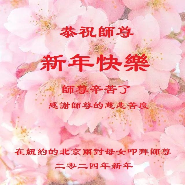 师尊辛苦了!感谢师尊的慈悲苦度! 在纽约的北京两对母女叩拜师尊! 二零二四年新年 纽约大法弟子恭祝师尊龙年快乐!