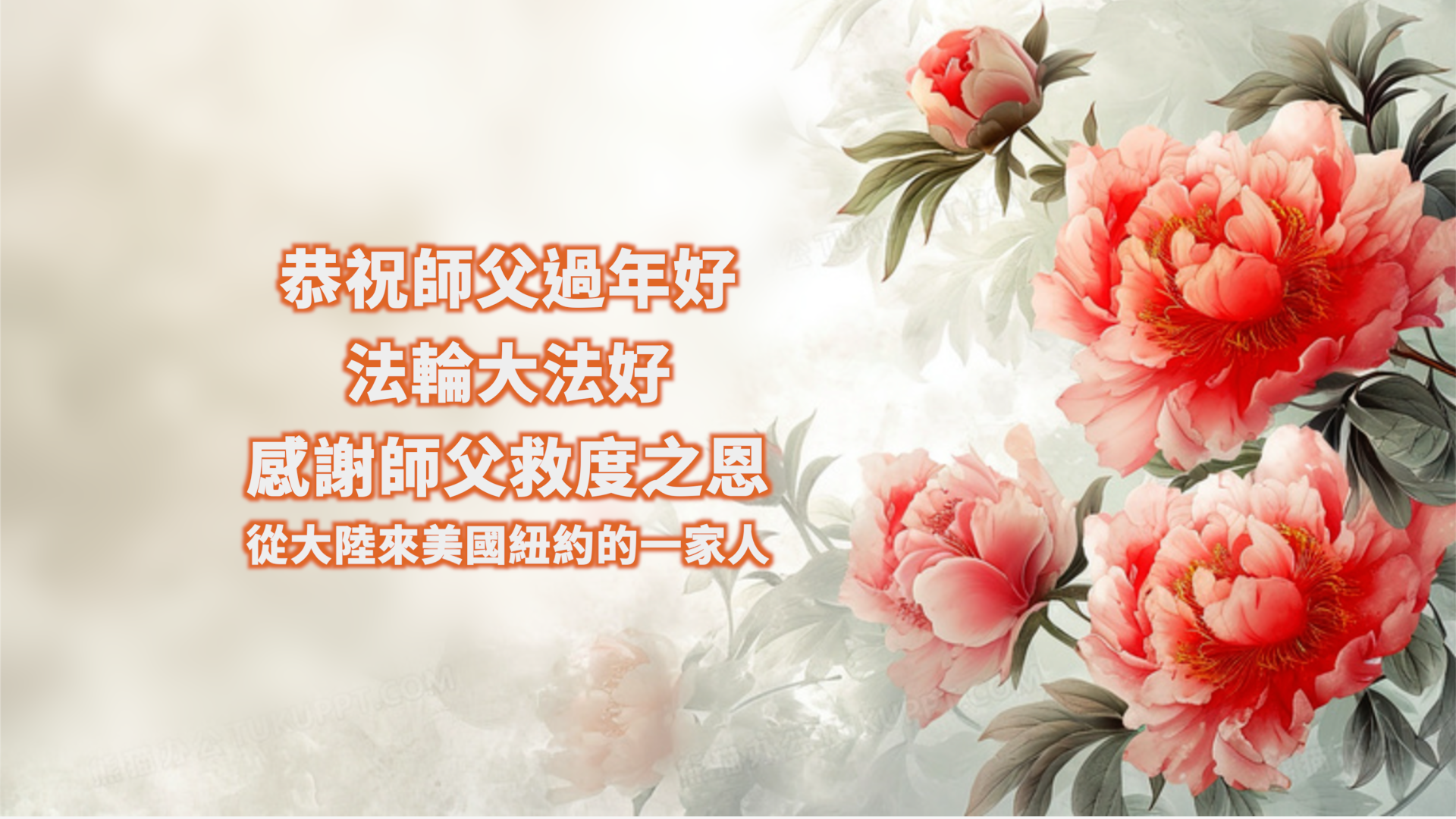 美国纽约一家三口大法弟子及北京一老弟子敬上 美国纽约一大法弟子恭祝师尊过年好!