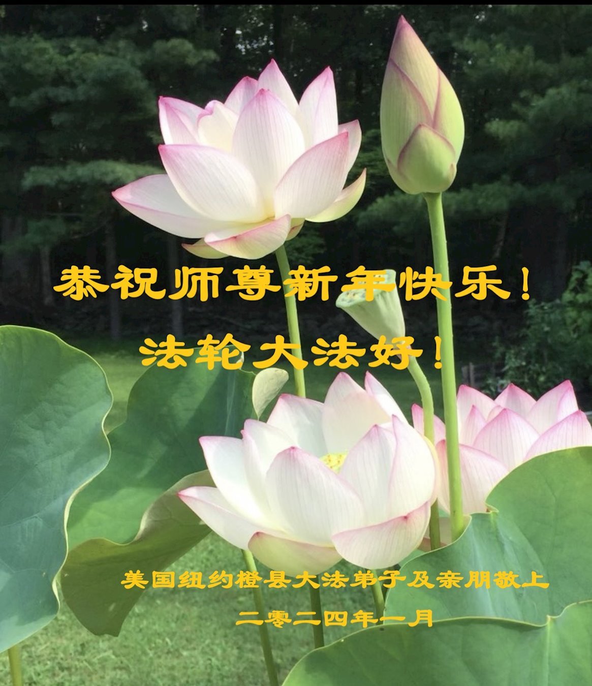 美国纽约橙县大法弟子及亲朋于二零二四年新年问候: 恭祝师父过年好!