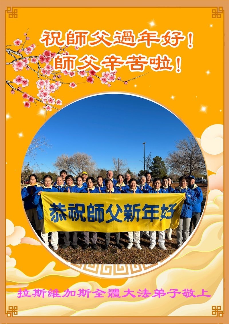 美国拉斯维加斯全体大法弟子恭祝慈悲伟大的师尊过年好!