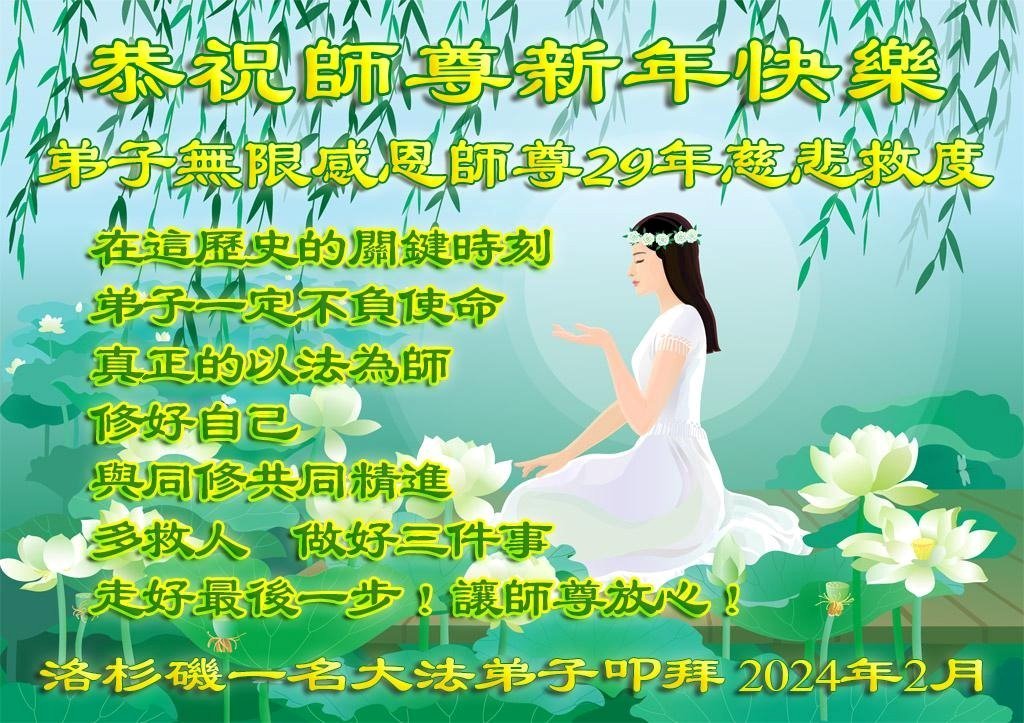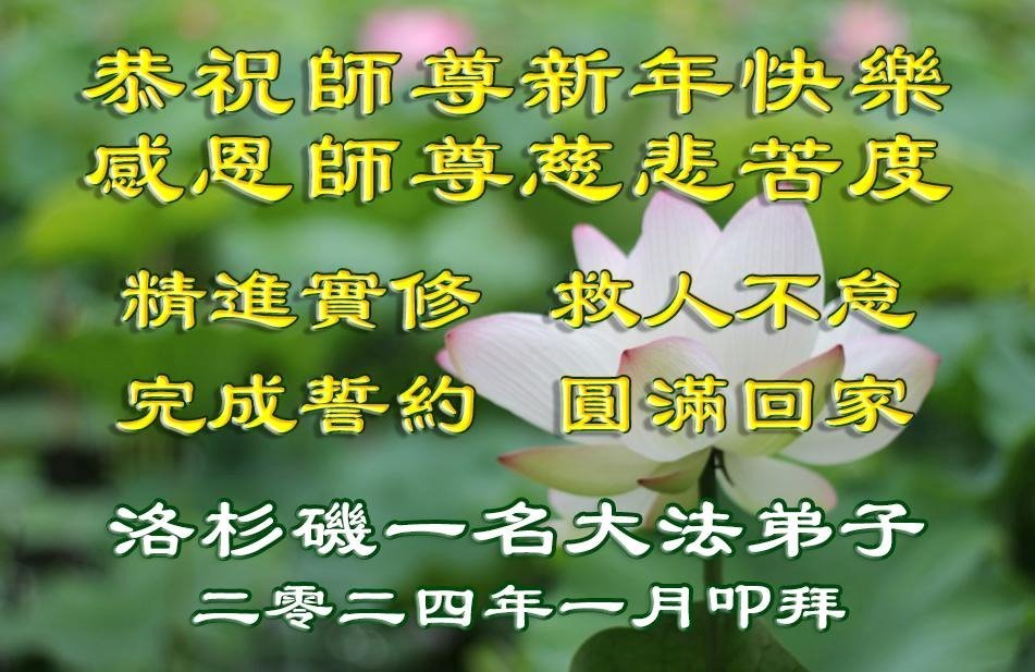 美国加州大法弟子敬上 二零二四年二月九日 除夕 天津市大法弟子在洛杉矶恭祝恩师新年快乐!