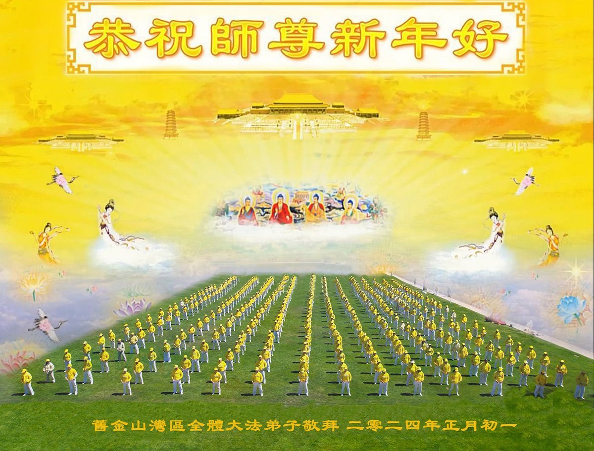 美国旧金山大法弟子恭祝慈悲伟大的师尊新年好!
