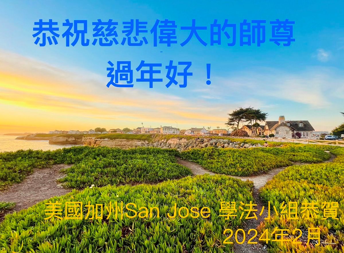 美国加州圣荷西学法小组大法弟子恭祝慈悲伟大的师尊过年好!