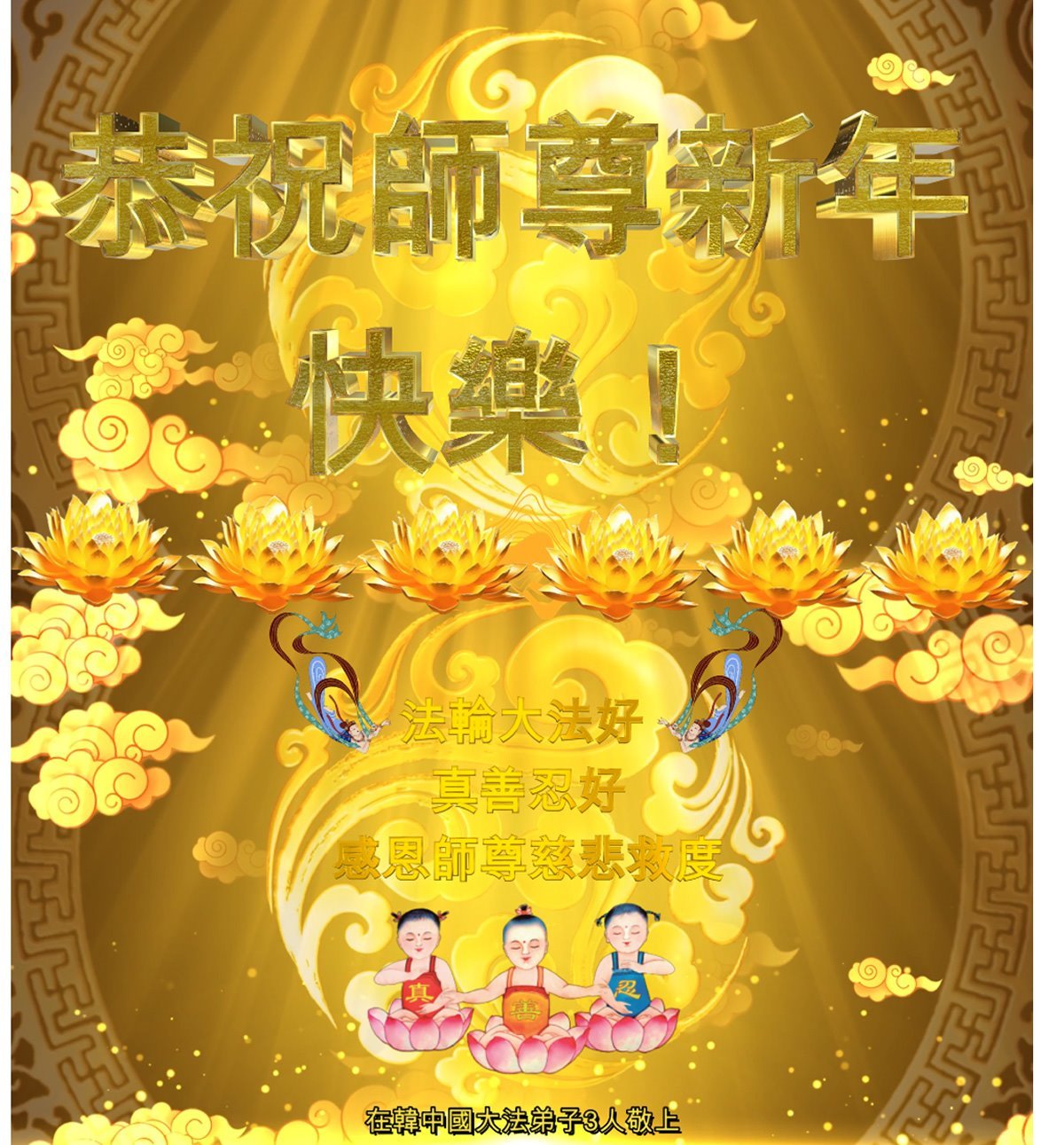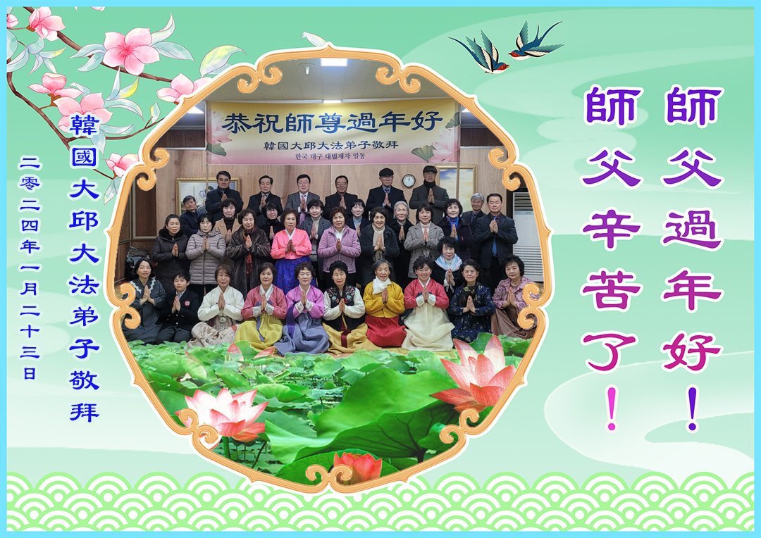 韩国大田市大法弟子恭祝慈悲伟大的师尊新年快乐! 韩国大邱市大法弟子恭祝师尊过年好!